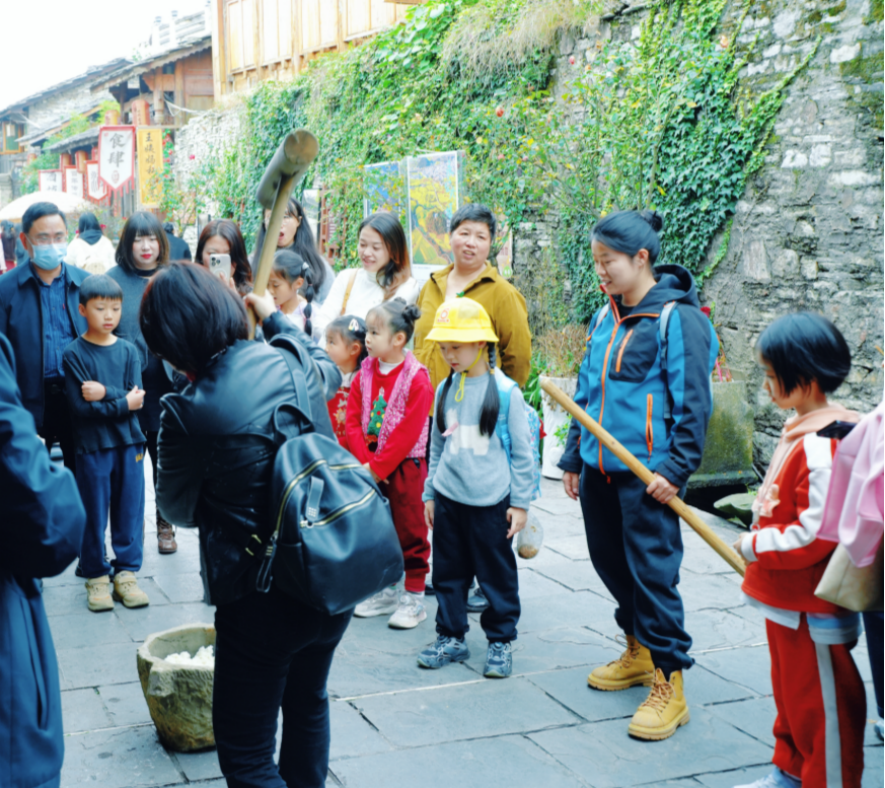 活动中,老师们观看了被誉为“明代军屯活化石”的屯堡地戏——这一国家级非物质文化遗产。六百年来,地戏通过口传心授,将“忠义”“勇敢”“家国情怀”等价值观代代相传,已成为融入屯堡人日常肌理的精神寄托。此外,大家还亲身体验了打糍粑、非遗扎染等传统技艺,并在古镇的青砖黛瓦与深巷石阶间,实地感受了屯堡建筑的历史风貌与文化底蕴。