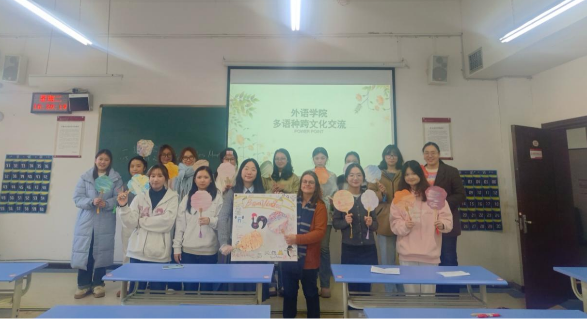 于11月25日下午3点在多媒体教室举办了“多语种跨文化交流”主题活动。西班牙语、葡萄牙语、英语系教师代表及各专业学生参与此次活动,通过特色文化分享、艺术创作与自由交流等形式,展现了语言多样性的魅力与价值。
