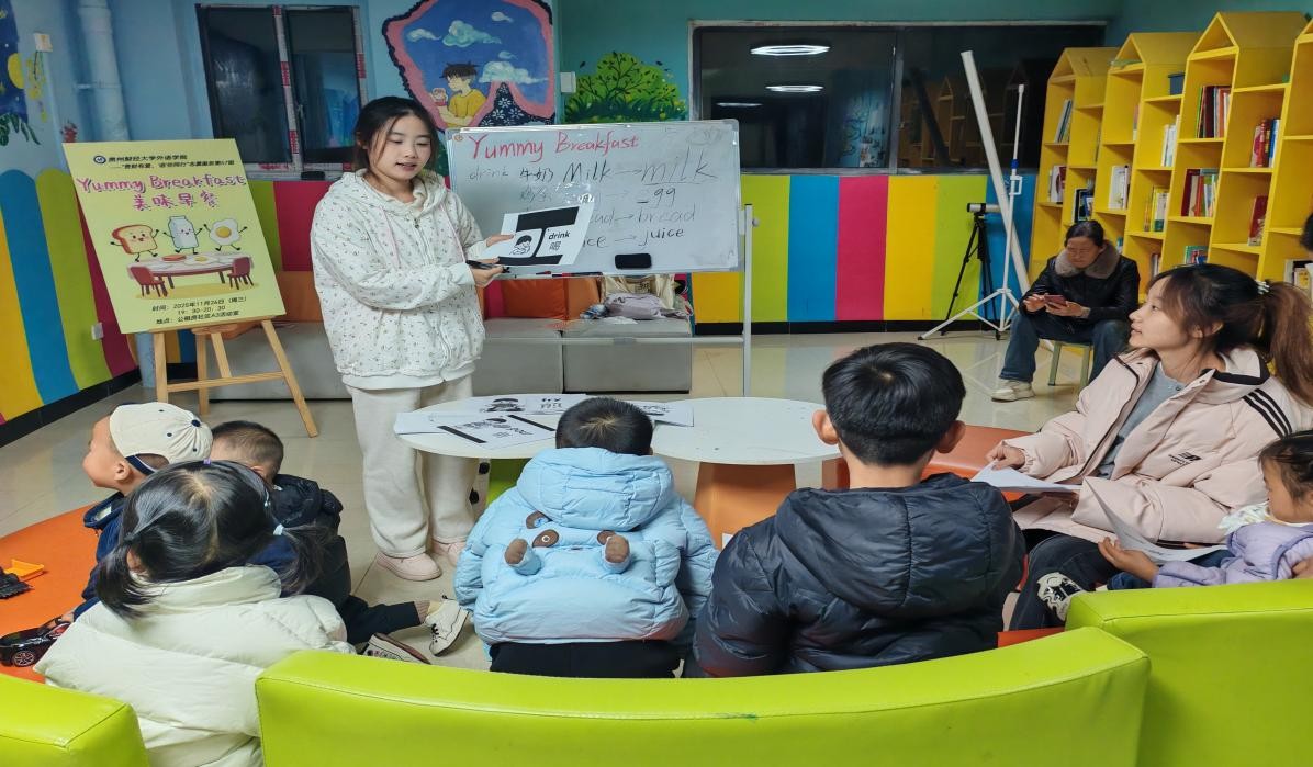 本次活动以早餐为主题,通过儿歌、实物、游戏等多元形式,帮助孩子们掌握了早餐相关英文词汇和基础句型,并学会了《Breakfast Song》的演唱。在激发英语学习兴趣的同时,也有效提升了孩子们的语言表达自信心。本期是我们“贵财有爱 ‘语’你同行”志愿服务活动本学期的最后一期活动。下学期“贵财有爱 ‘语’你同行”志愿服务活动将继续带来精彩内容,期待与更多小朋友相约趣味英语课堂,共同探索语言的奥秘!