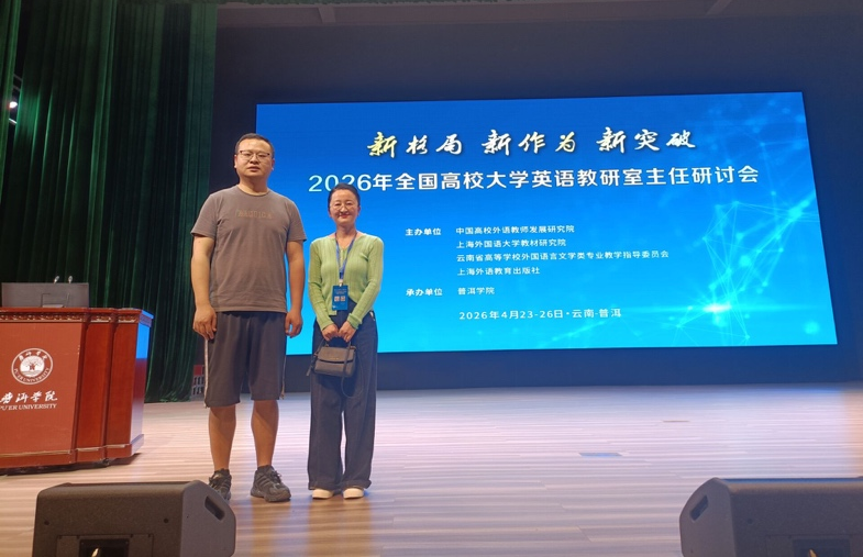 国际外语教研室副主任曾选老师与骨干教师黎畅老师前往云南普洱,参加了“2026年全国高校大学英语教研室主任研讨会”。此次会议由中国高校外语教师发展研究院、上海外语教育出版社等单位主办,普洱直播露点